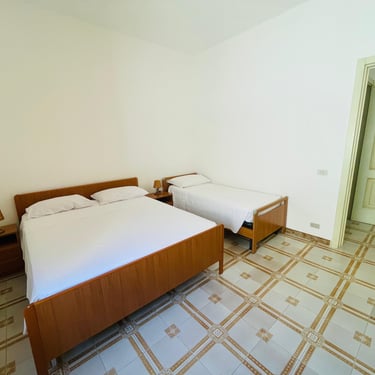 Composto da camera matrimoniale, camera con due letti singoli, soggiorno con zona pranzo, cucina attrezzata, bagno e balcone. La terrazza vista mare al piano superiore è perfetta per colazioni all’aperto, cene estive o momenti di relax.
