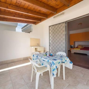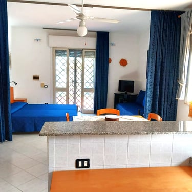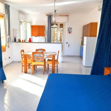 Monolocale climatizzato in un ampio giardino condiviso a Torre Lapillo.
