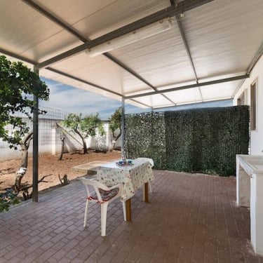 È accessoriato con aria condizionata, zanzariere a porte e finestre, e posto auto nel giardino.