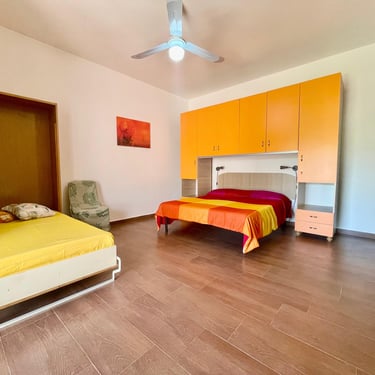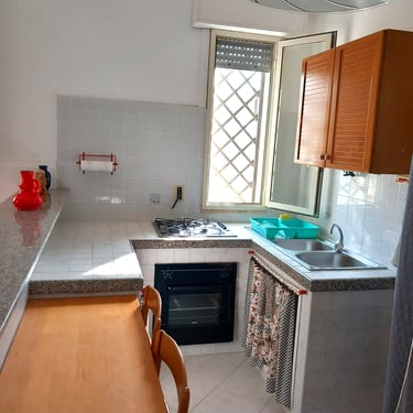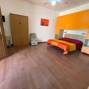 Oltre ad una graziosa veranda privata sul retro, arredata, l appartamento, offre un unico grande ambiente in cui sono presenti un letto matrimoniale ed un singolo, una sala da pranzo con angolo cottura ben equipaggiato che può all occorrenza essere divisa in due ambienti separati con tende scorrevoli. Un bagno con doccia ed un posto auto in giardino completa la proprietà.